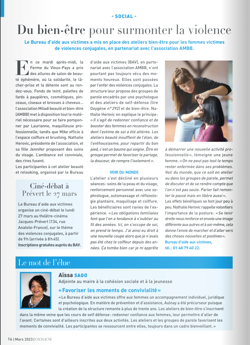 Qui nous sommes ? : Un collectif désireux d’améliorer la vie de grâce au soin de soi. Nous avons crée une association en 2014 qui a pour mission de prodiguer, transmettre, promouvoir et démocratiser des soins de beauté et bien-être, destiné à un public social à Aulnay-sous-Bois 93600 et en Seine-Saint-Denis, pour les personnes fragilisées par des épreuves comme la maladie, le chômage, la solitude, l’insertion, le mal être, la vieillesse , le stress et les femmes victimes de violences, les maltraitantes et les maux modernes.